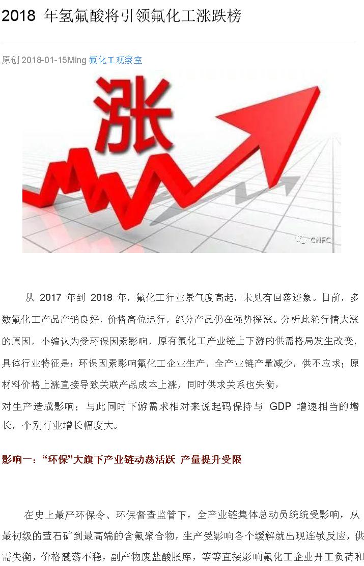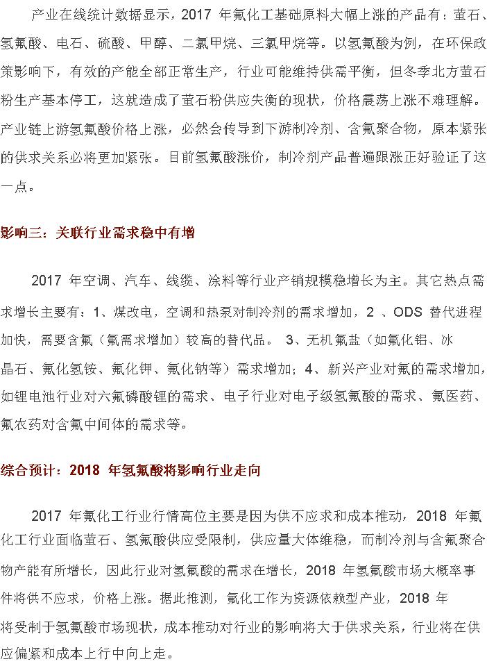 2018年氫氟酸將引領(lǐng)氟化工漲跌榜